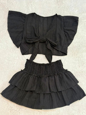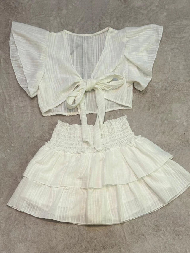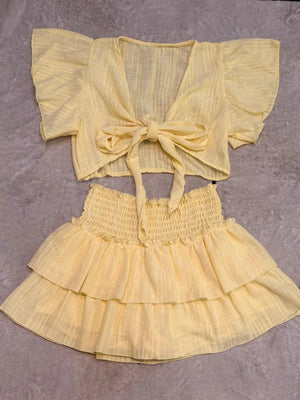 Conjunto top y short pollera simil lino tramado