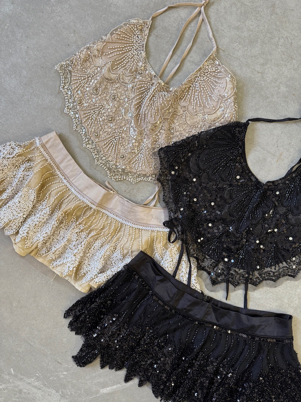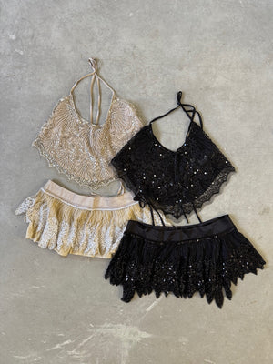 Falda brillos volados en pico