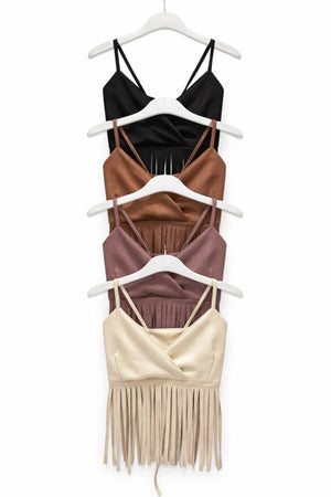 Top gamuza con flecos vaquera